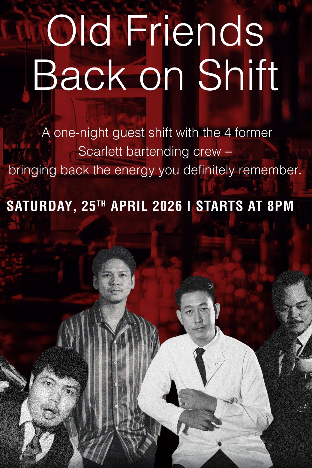 April 2026 from 8 PM A One-Night Guest Shift at Scarlett Bangkok Some nights are worth bringing back. On Saturday, 25 April 2026, from 8 PM, Scarlett welcomes back four familiar faces behind the bar for a special one-night [...]